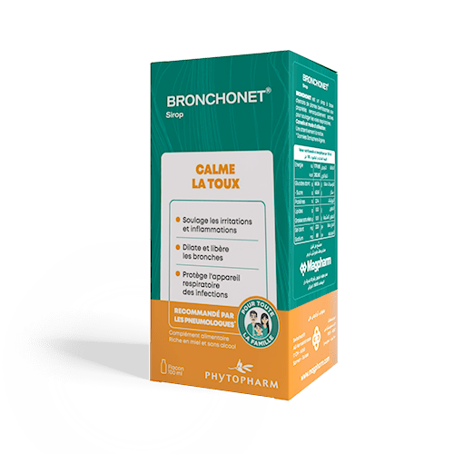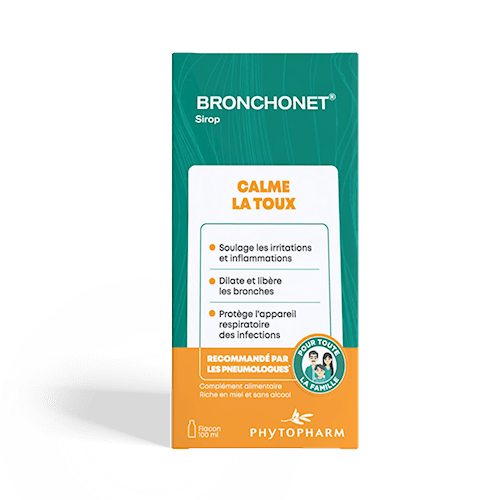 Bronchonet Sirop est une solution naturelle adaptée à toute la famille dès l’âge de 3 ans pour soulager efficacement tous types de toux, y compris la toux sèche, allergique, asthmatique et celle du fumeur. Enrichi en plantes médicinales et en miel, ce sirop diminue l’inflammation à l’origine des irritations et calme les toux sans provoquer de somnolence. Grâce aux propriétés apaisantes du miel, il soulage également la toux nocturne pour un meilleur confort.
